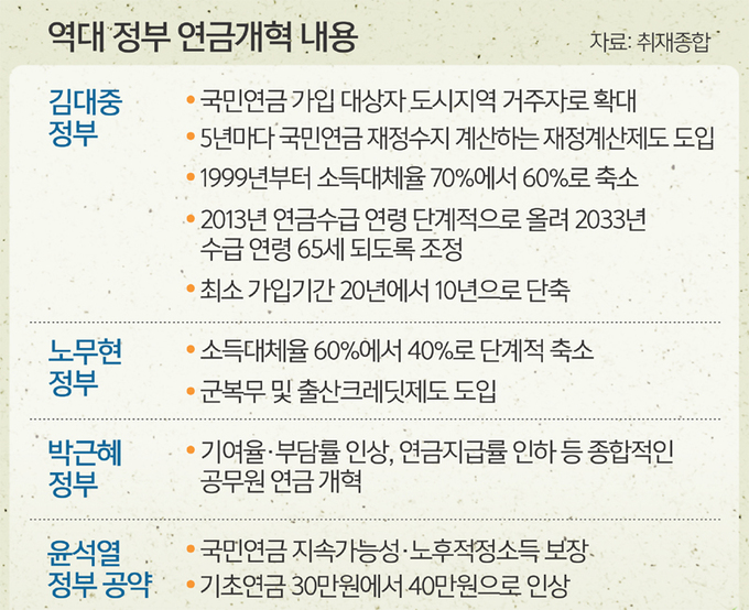안철수: 저는 보험료율을 높이는 것은 지속가능성을 위해 피해갈 수 없다고 생각합니다. 그런데 소득대체율을 지금보다 더 낮출 수는 없습니다. 그 렇다고 높이기도 힘듭니다. 제일 이상적인 시나리오는, 2028년이 되면 소득대체율이 40%가 됩니다. 그 선을 유지하는 게 최소한이다, 지금도 사실 ‘용돈 연금’이라는 말이 나올 정도로 충분하지 않은 상황에서 이것을 더 낮추는 것은 바람직하지 않습니다. 정리해 말씀드리면, 보험료율은 지금보다 높이지만 소득대체율은 40% 정도를 최소한으로 두고 유지하는 것. 일본은 50%입니다. 대신 보험료율이 조금 더 높지요. 그리고 보험료율을 어느 정 도로 높일 것인가, 우리나라가 지금 9% 내고 있습니다. OECD 평균이 18%입니다. 그런데 갑자기 이렇게 2배로 올리는 것은 부담이 많이 됩니다. 그리고 우리나라의 공적연금 중에서 공무원연금·군인연금·사학연금이 있지 않습니까?거기는 보험료율이 한 15% 됩니다. 그래서 국민연금 9%, 특수직역연금 15%, OECD 평균 18% 이 사이에서 사실 국민적인 합의를 끌어내야 합니다. 제일 좋은 모델이 영국입니다. 영국은 연금개혁에 대해 12주간, 그러니까 석 달간 전 국민이 모여 토론을 했습니다. 그때는 영국 전체가 연금개혁에 대한 이슈로 완전 모든 사람이 같이 고민하고 자기 의견을 내면서 엄청 서로 시끄럽기도 하고 그랬습니다만, 결국 그렇게 해서 합의가 돼 지속가능한 연금제도가 됐습니다. 우리도 영국처럼 전 국민이 이렇게 모여, TV방송도 마찬가지겠지요. 전부 자기의 생각을, 이야기해서 가닥을 잡고 정리하는 것. 저는 그런 방법이 다음 정권 초기에 일어나는 것이 좋겠다고 생각합니다.