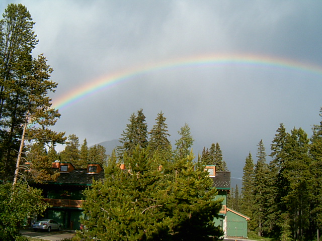 숙소인 레이크루이스인에 도착하니 숙소 위로 무지개가 떠 있습니다. 이름 그대로 레이크 루이스 근처에 위치해 있습니다. 이 곳은 레이크 루이스에서 차로 10분 정도 떨어진 곳에 위치해있다.