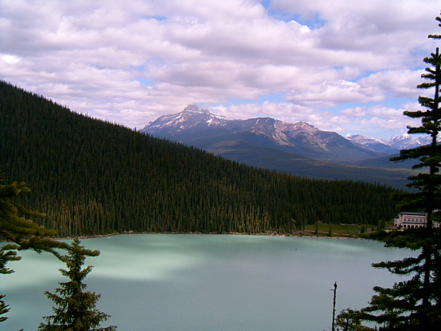 캐나다 록키 산맥에서 가장 아름다운 빙하 호수인 레이크 루이스. 이 호수의 수면은 해발 1739m이다.