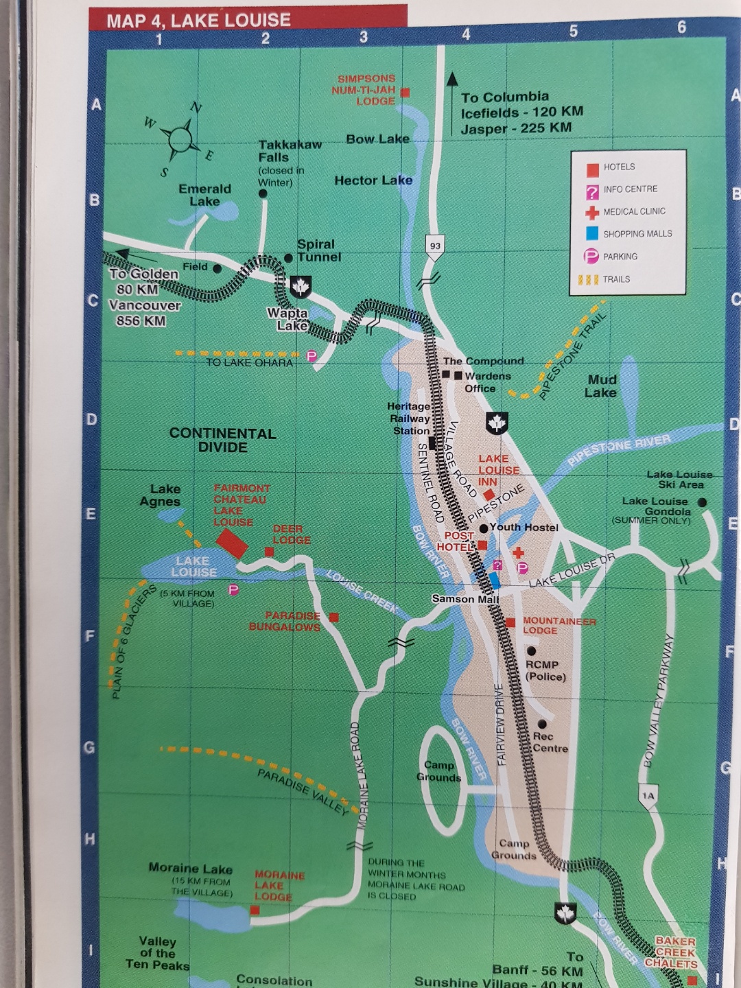 페어몬트 샤또 레이크 루이스(Fairmont Chateau Lake Louise) 호텔. 호수를 감상하며 쉴 수 있는 유일한 호텔이어서 사시사철 전 세계 관광객들이 예약을 걸고 있는 곳이다.왼쪽 사진은 밴프에서 레이크 루이스까지, 오른쪽 사진은 레이크 루이스에서 재스퍼 국립공원까지 가는 길.