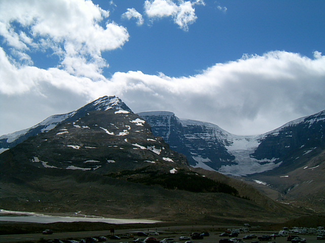 1844년에만 해도 아싸바스카 빙하가 현재 주차장 위치까지 차지하고 있었다고 한다. 지금은 주차장 뒤로 훌쩍 물러나 있다.