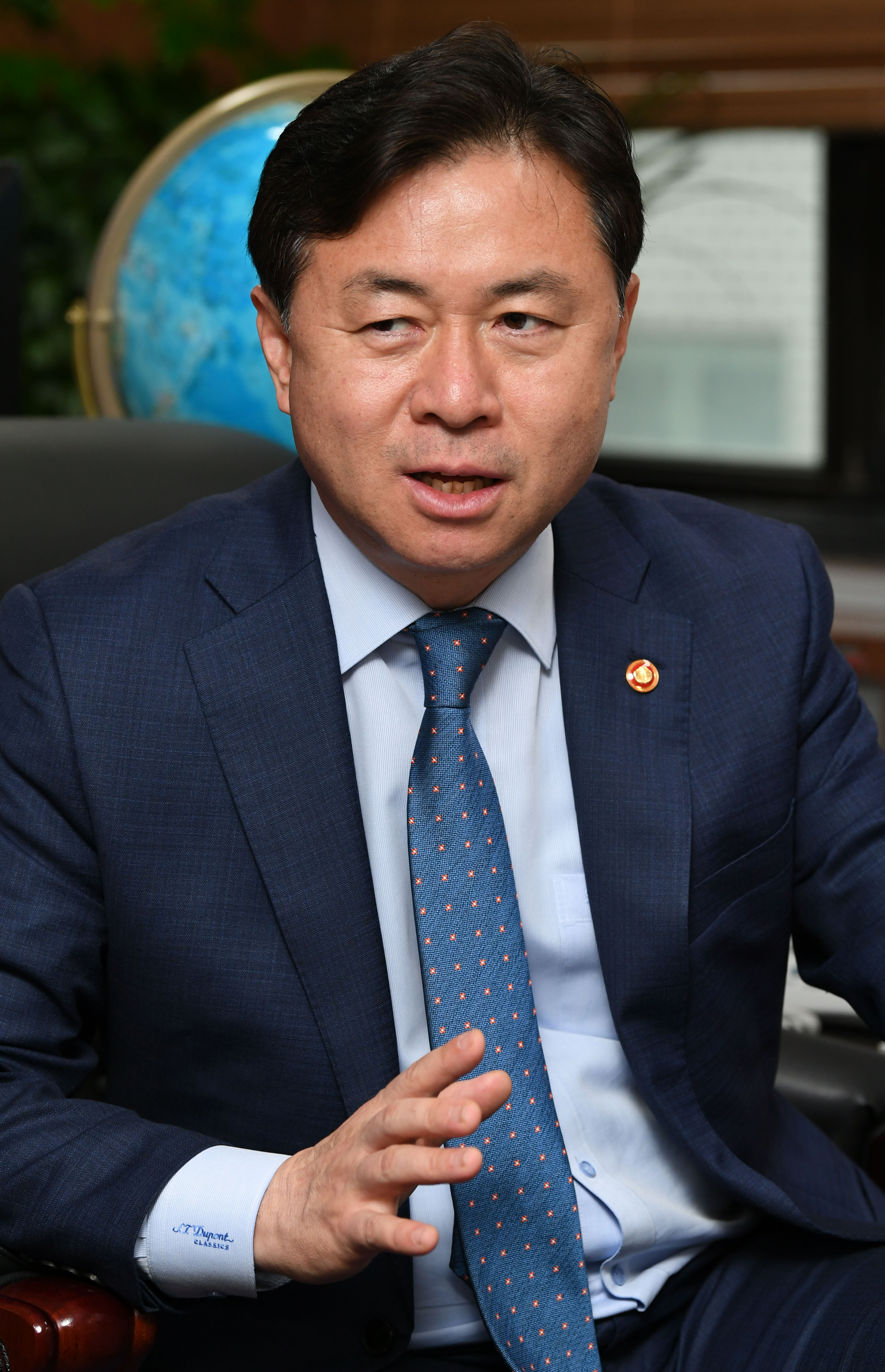 “정말 무식한 결정이다. 정말 무지한, 무지막지한 결정이고, 우리나라뿐만 아니라 전 세계 해운업계가 경악한 결정이었다. 국회 농림축산식품해양수산위원장을 맡고 있을 때 한진해운과 현대상선을 합병하면 된다고 강조했다. 한진해운에 경영 책임을 물어서 경영권을 가져오면 되는 문제였다. 한진해운 파산 이전에 비하면 원양선대 규모가 반 토막도 아니고 8분의 1, 7분의 1 정도 수준으로 줄어들었다. 지금은 다 외국선사한테 뺏기고 있는 거다. 우리나라 전체 원양해운 매출 역시 2년 새 7조∼8조원 줄었다. 그걸 만회하기 위해 ‘해운재건 5개년 계획’을 마련했다. 목표는 한진해운 파산 전의 국적 원양선대 선복량(배에 실을 수 있는 화물의 총량) 규모인 100만TEU(1TEU는 20피트짜리 컨테이너 1개)를 다시 회복하는 것이다.”