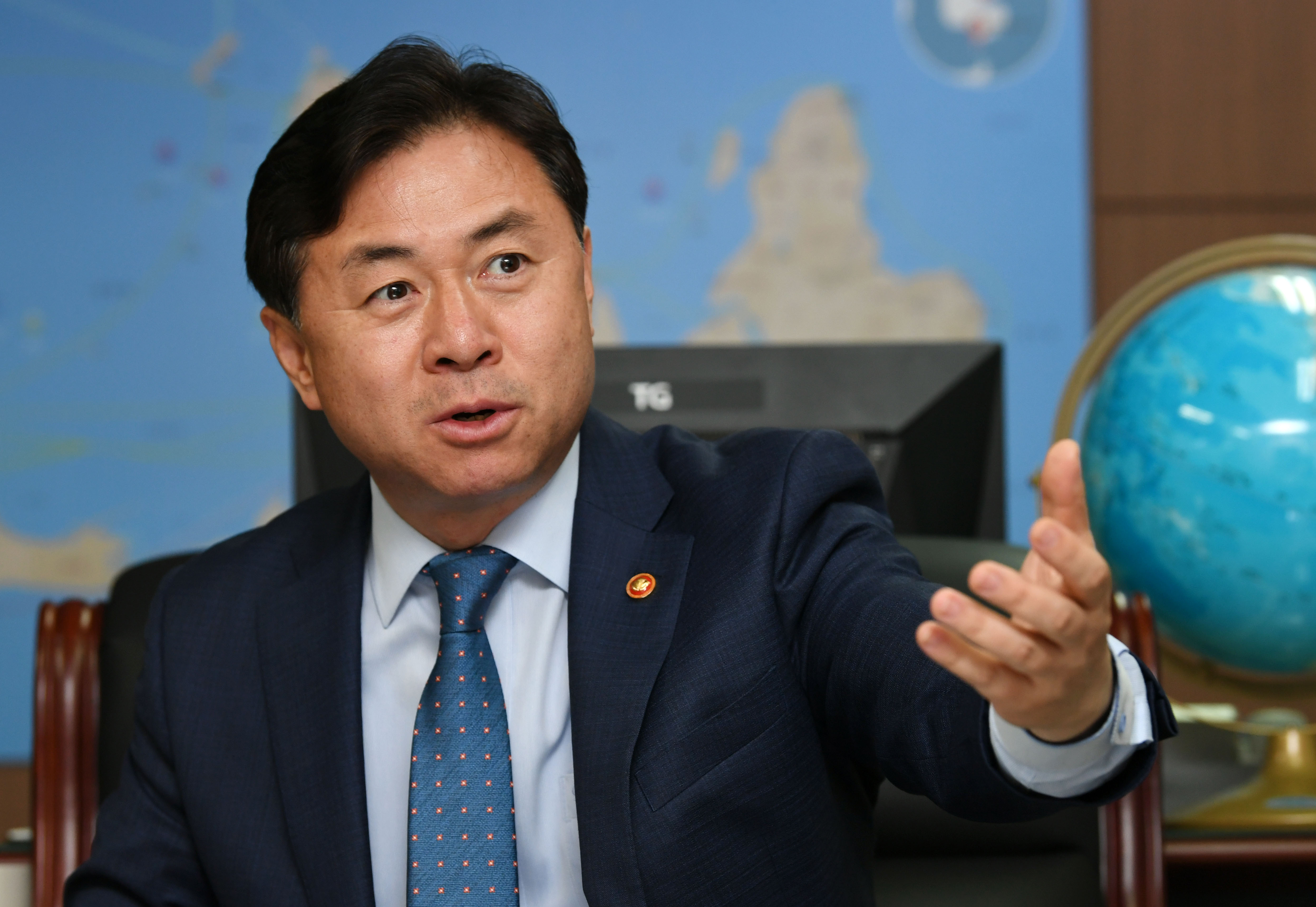 “지난해 9월부터 비상설 조직으로 ‘해양수산 남북협력 추진 태스크포스(TF)를 구성해 운영 중이다. 해양수산 분야는 바다가 기반이라 인프라 구축이 필요한 육상협력에 비해 상대적으로 추진이 용이하다. 공동어로수역은 한반도 긴장 완화는 물론이고 중국 어선의 불법 조업도 사전에 차단할 수 있어서 우리 어민들에게도 큰 도움이 된다. 향후 남포·해주·원산항 등 노후화된 북한 항만을 개발하고 항로를 재개할 경우 남북 간 교역 기반 역할을 할 것으로 기대하고 있다.”