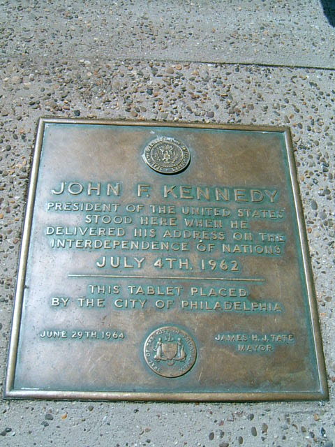 인디펜던스 국립역사공원(Independence National Historical Park) 내에 있는 자유의 종(Liberty Bell). 당초 영국이 펜실베이니아 식민지 지정 50주년을 기념해서 제작한 뒤 주 의회 건물 탑에 설치했는데 미국 독립선언 때 울려서 '자유의 종'으로 이름이 바뀌었다. 종에는 '이곳의 모든 땅의 주인에게 자유를 고한다'라는 성서의 구절이 새겨져 있다. 미국의 100달러 지폐 앞면 오른쪽 하단에 독립선언문 작성 때 사용했다는 잉크병이 그려져있는데 그 병 속에 자유의종이 들어있다. 100달러 지폐는 위폐 방지 차원에서 100달러 지폐를 기울이면 종의 색깔이 구리색에서 녹색으로 변하게 특수 제작된다. 종에 균열이 생긴 탓에 1846년 이후 타종하지는 않는다.