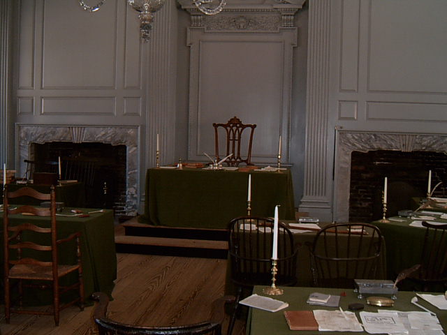 1776년 7월4일 토머스 제퍼슨이 기초한 미국 독립선언문이 채택된 인디펜던스 홀. 1787년 이 곳에서 헌법제정회의가 열렸다. 영화 'National Treasure'에서 니콜라스 케이지가 특수 안경을 찾아낸 장소가 바로 이 곳이다. 영화에선 이 안경을 써야 독립선언문 뒷 면에 숨겨진 보물 지도가 보인다.