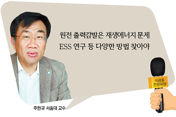 주한규 서울대 교수(원자핵공학)=원전의 출력감발 문제는 재생에너지의 변동성(일조량, 풍속에 따라 전력 생산이 달라지는 것) 때문에 발생한다. 재생에너지 발전량이 늘어서 전체 전기 공급이 수요보다 늘면 정전이 일어날 수 있으니까 원전의 출력을 낮추는 것이다. 그런데 재생에너지 변동성에 의해 초래되는 교란은 원인 제공자인 재생에너지가 풀어야 하는 것 아닌가. 에너지저장장치(ESS)를 확보하든, 어떻게 하든 스스로 단점을 극복하고 (전력망에) 들어와야 한다. 재생에너지를 20∼30%까지 늘리려거든 ESS 쪽 연구를 해서 싸고 다양한 방법을 찾아야 한다. 그렇지 않은 상태에서 ‘일단 재생에너지부터 늘리고 원전은 꺼라’라고 하는 건 말이 안 맞는다. 이게 내 대답이자 질문이다.