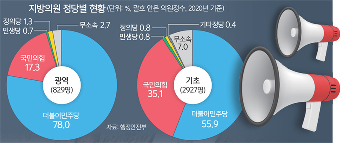 지방자치의 여러 문제는 감시와 견제가 부족한 지방의회의 구조적 현실에서 싹튼다. 중앙정치와 비교해 감시 역할을 할 만한 시민단체나 언론이 부족한 데다 거대양당 위주의 독식 체제로 내부 견제도 제대로 이뤄지지 않는다.