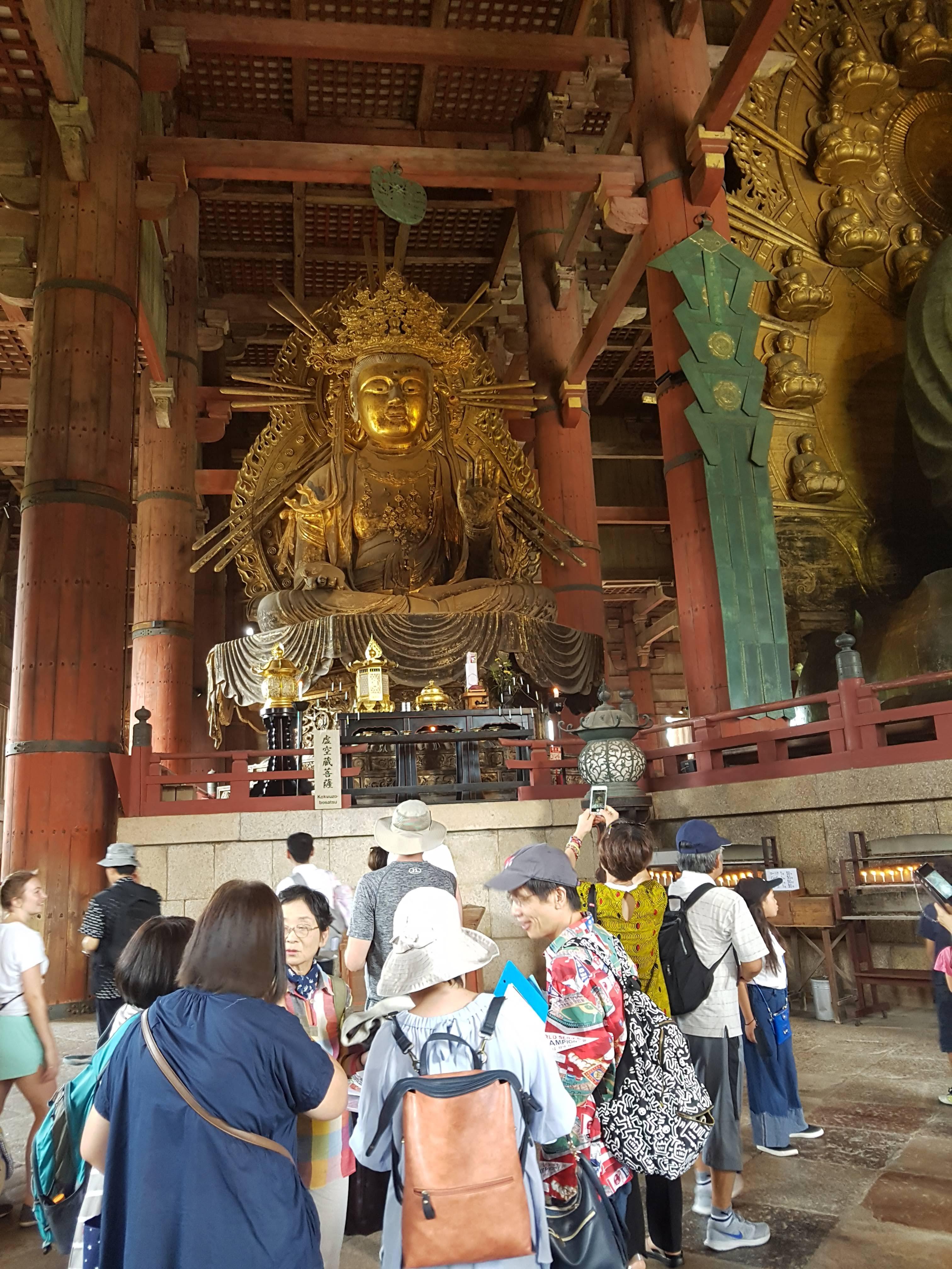 일본 나라현 나라 시내 한복판에 위치한 동대사에는 세계에서 가장 큰 청동 대불이 모셔져 있다. 일본 화엄종의 대본산이다. 나라 공원에 인접해 있다. 공원에는 약 1천마리의 사슴이 방목되고 있다. 석가모니가 최초로 설법한 녹야원(鹿野苑)을 연상시킨다.