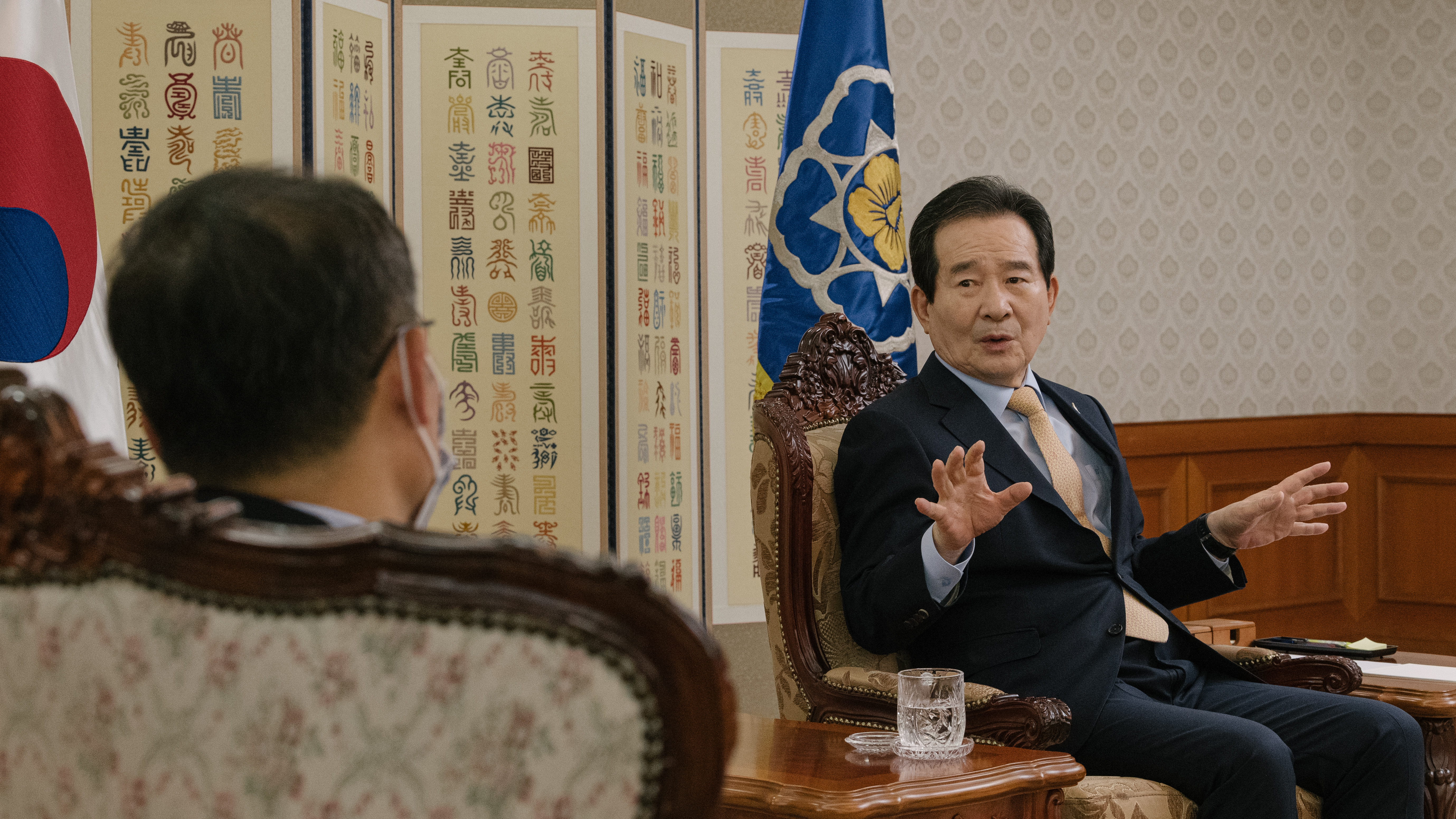 여권 내 대표적 ‘경제통’인 정세균 총리는 “혁신성장에 전력투구하여 경제 활력의 마중물이 되겠다"고 했던 취임 포부를 제대로 펼 수 없는 상황이 못내 아쉬운 표정이었다. 올 1월 취임하자마자 신종 코로나바이러스 감염증(코로나19)이 전 세계로 확산하면서 정 총리는 ‘방역’과 ‘경제 살리기’라는 상충되는 과제 사이에서 피를 말리는 결단을 요구받고 있다. 지난 24일 정부서울청사 총리 집무실에서 만난 정 총리는 “지구촌 전체가 코로나19의 포로가 되어 있는만큼 방역에도 성공하고 경제도 살리고 싶다”면서 “국민들이 코로나19 위기 극복을 위해 협조를 아끼지 않고 있고 의료진들이 고생을 많이 하고 있다. 모두 감사드린다”고 말했다. ‘어떤 총리로 남고 싶으냐’는 질문엔 “위기를 극복한 총리, 정부에 대한 국민의 신뢰를 키운 총리, 대한민국이 선도형 경제로 가는 초석을 다진 총리”라고 답했다.
