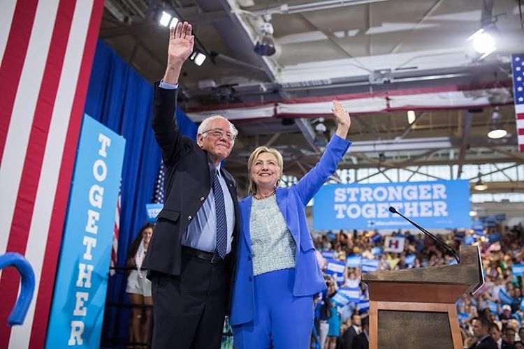 샌더스는 7월12일 뉴햄프셔주에서 힐러리와 첫번째 공동 유세를 갖고 힐러리 지지를 공식 선언했다. 유세장에는 ‘함께하면 더 강해 진다’stronger, together 라고 쓰인 플래카드가 파도쳤다.