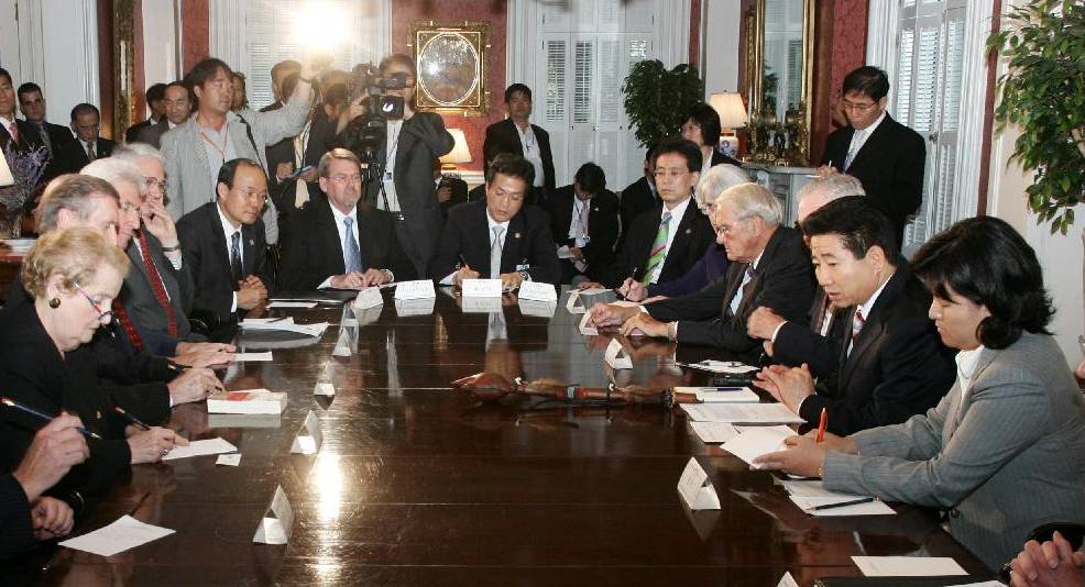 노무현 정부의 일곱번째 한미 정상회담이 베트남 하노이에서 개최됐다. 한미 자유무역협정 협상, 한국의 비자면제프로그램 가입 논의가 주 의제였다. 이와함께 1개월 전에 이뤄진 북한의 핵실험으로 북핵 문제 해결을 위한 해법 모색이 집중적으로 이뤄졌다. 부시 대통령은 "앞으로 북핵 문제 해결에 집중하겠다"면서 "북한이 핵무기를 포기한다면 남북한과 미국이 만나 한국전쟁을 최종적으로 종결시키길 희망한다"고 말했다. 부시 대통령의 '북핵 문제 집중 약속'은 이후 2006년 11월 말 이뤄진 북미중 베이징회동과 12월 6자회담 재개, 2007년 1월 북미 베를린 회동, 그리고 2.13합의에 이르는 일련의 북핵 협상의 토대가 됐다.